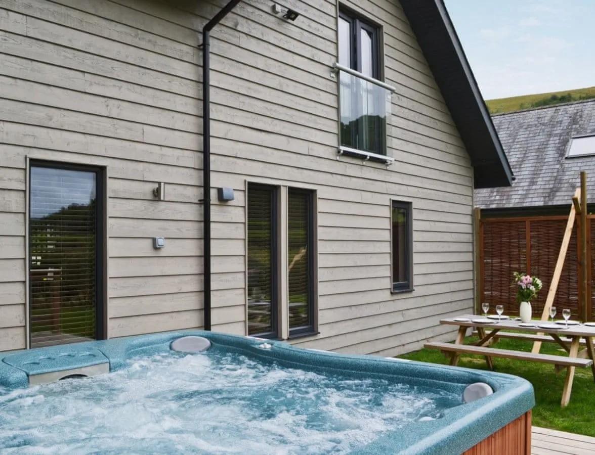Oak Lodge extends the experience outdoors with a decked patio, providing a serene spot to soak in the surroundings. For those seeking a touch of indulgence, a private hot tub awaits under the starlit sky.